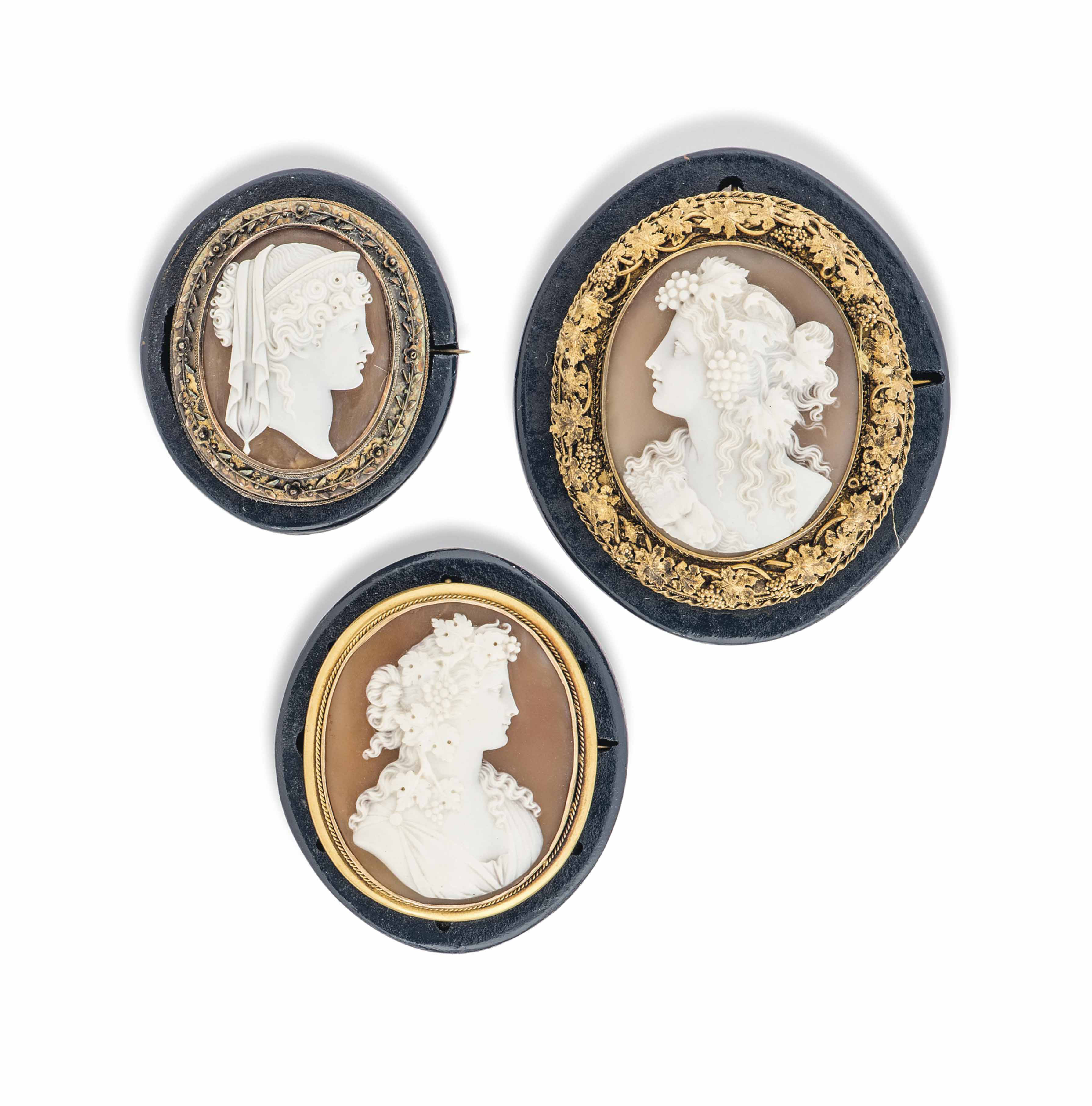 After the death of Prince Albert in 1861, black became customary in both clothing and jewellery. If cameo brooches are carved in jet, black onyx or black glass, it is very likely to be between 1861 and 1901 although mourning brooches were also used before this date.