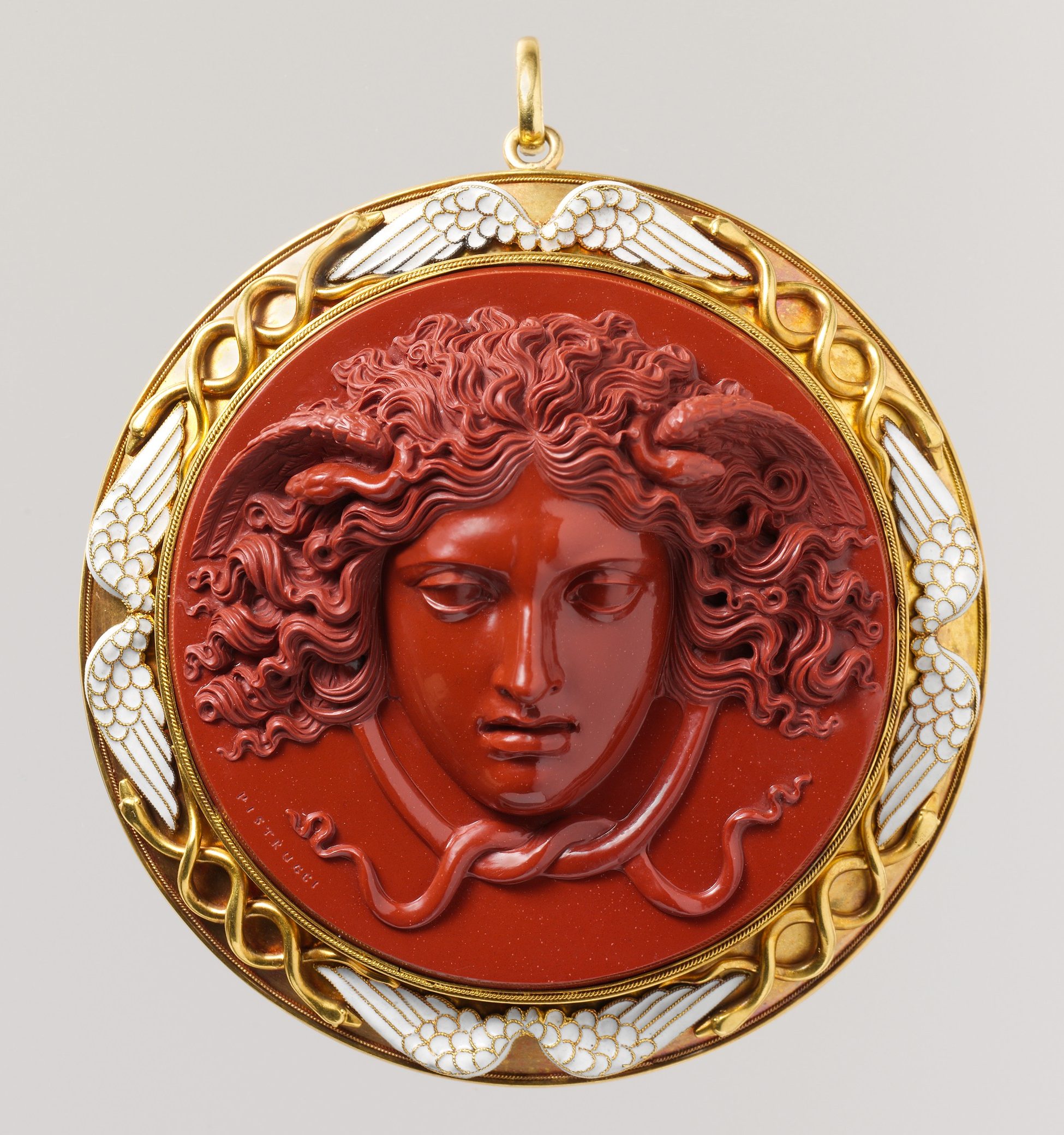 Roundel of Medusa Necklace Medusa Intaglio Cameo by Benedetto Pistrucci Medusa Roman Onyx Cameo of Medusa Medusa Intaglio Ring Hand carved shell cameo depicting Medusa