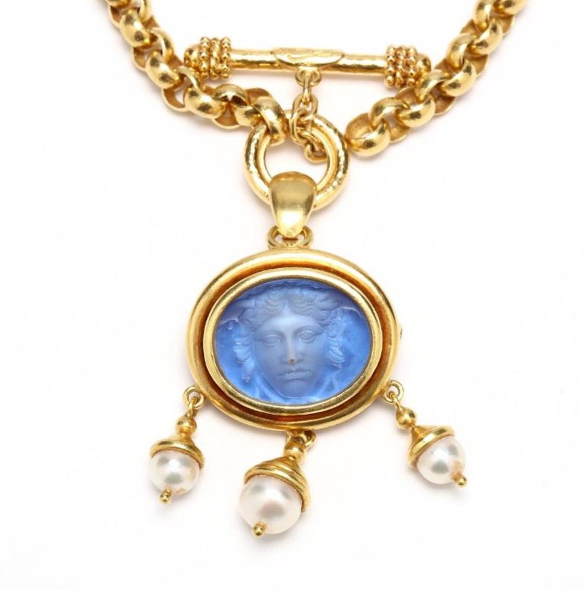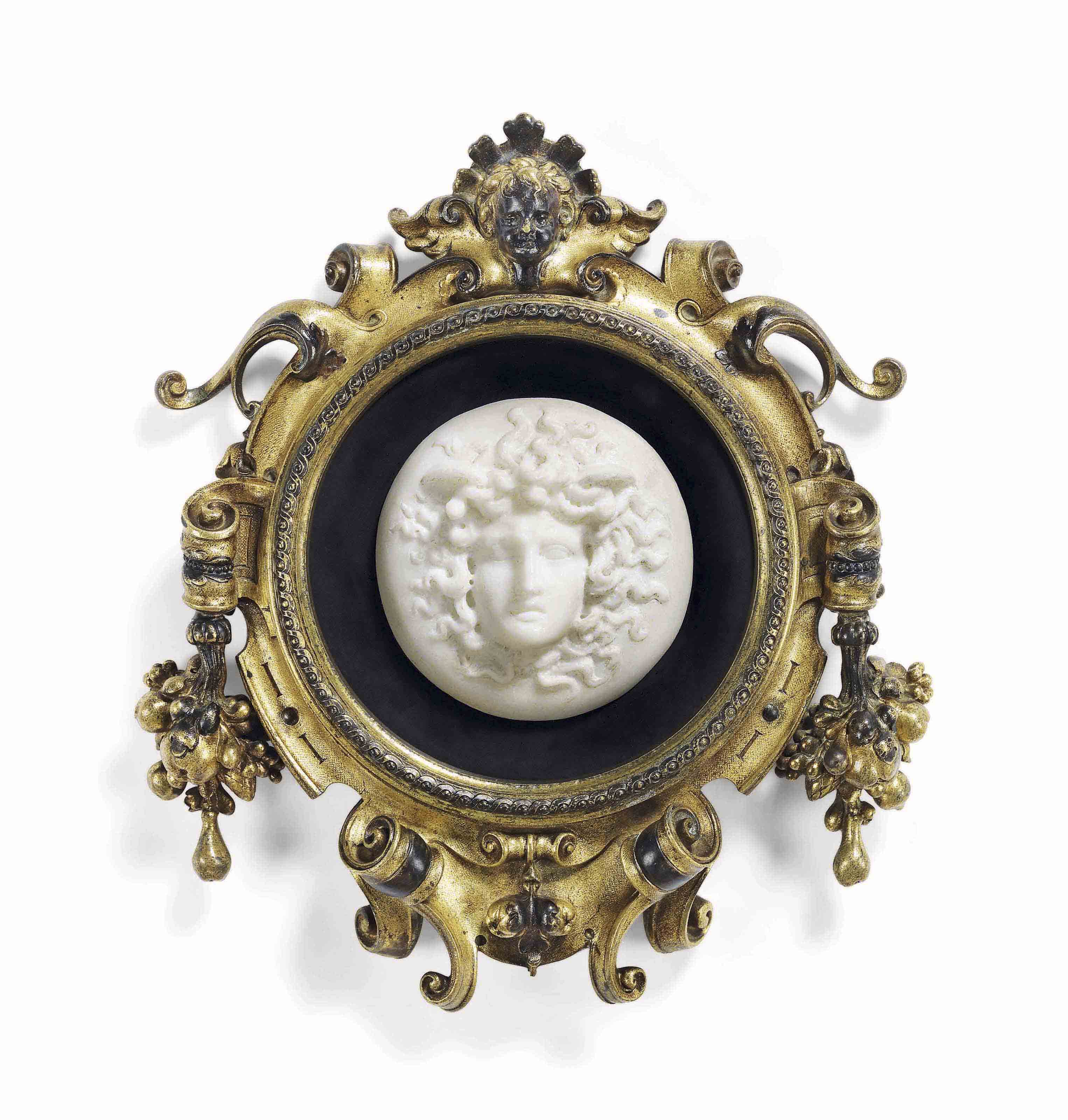 A carved hardstone cameo pendant Carved to depict the flaying of Marsyas Cameo of transparent blue glass paste, engraved with a youthful satyr AN ITALIC CARNELIAN RING STONE WITH A SATYR CIRCA 2ND-1ST CENTURY B.C. Glass cameo cup (scyphus) fragment Period: Early Imperial, Augustan or Julio-Claudian Date: late 1st century B.C.–mid-1st century A.D. Cameo with satyr and infant Silver-Gilt, Gold, Carved Shell Cameo, Micromosaic and Seed Pearl Pendant, Nicolo Morelli, Early 19th Century